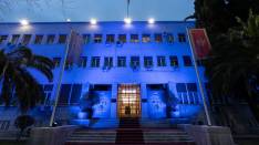 Zgrada Skupštine osvijetljena plavom bojom, znak podrške osobama sa autizmom
