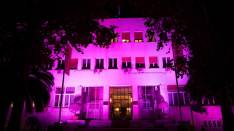 Zgrada Skupštine osvijetljena ružičastom bojom