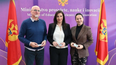Iz Vlade je saopšteno da su prof. dr Anđela Jakšić-Stojanović, ministarka prosvjete, nauke i inovacija i Aleksandra Hajduković, direktorica Zavoda za udžbenike i nastavna sredstva, uručile direktoru Gimnazije „Slobodan Škerović“ Zoranu Pejoviću udžbeničke komplete na engleskom jeziku iz matematike, biologije, istorije i fizike, namijenjene učenicima dvojezične gimnazije.