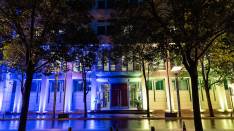 Zgrada Vlade Crne Gore osvetljena je u bojama ukrajinske zastave, kao znak solidarnosti sa Ukrajinom u trenutku kada ta zemlja i dalje trpi posledice ratnih dešavanja.