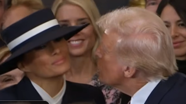 Donlad Trump je uoči inauguracije na pozornici pokušao poljubiti suprugu Melaniju, a kad je napućio usne kako bi ju poljubio, zasmetao mu je njezin šešir pa ju je uhvatio za ruku i dao joj "vazdušni" poljubac.