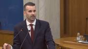Premijer Milojko Spajić odgovara na pitanja predstavnika poslaničkih klubova na posebnoj sjednici Skupštine Crne Gore.
