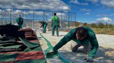 kipe radnika ,,Zelenila“ d.o.o. Podgorica izvode radove na izgradnji dječjeg igrališta u Ulici Zlate Raičević u Donjoj Gorici.