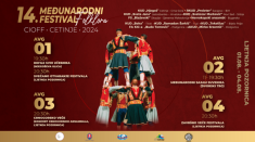Četrnaesti Međunarodni festival folklora „CIOFF Cetinje 2024“ biće održan od prvog do četvrtog avgusta na Ljetnjoj pozornici na Cetinju, saopšteno je iz Prijestonice Cetinje.